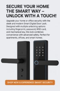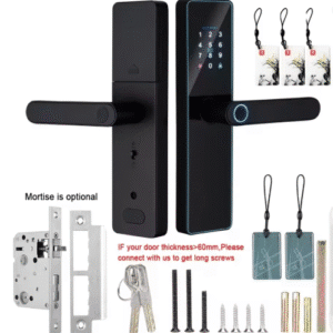 Upgrade your home or office security with the sleek and modern Aqua Smart Water Proof Door Lock IP65. Designed with multiple unlocking options including fingerprint, password, RFID card, and mechanical key, this lock combines convenience with advanced safety. Perfect for apartments, offices, and smart homes.