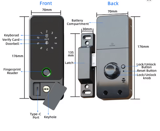 Unlock Methods: Fingerprint, RFID, Password, App, Key