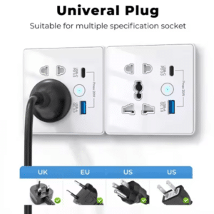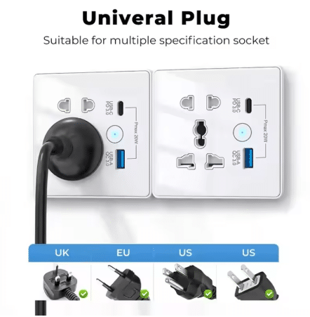Supports international plug types, making it perfect for homes, offices, or travel hubs. -